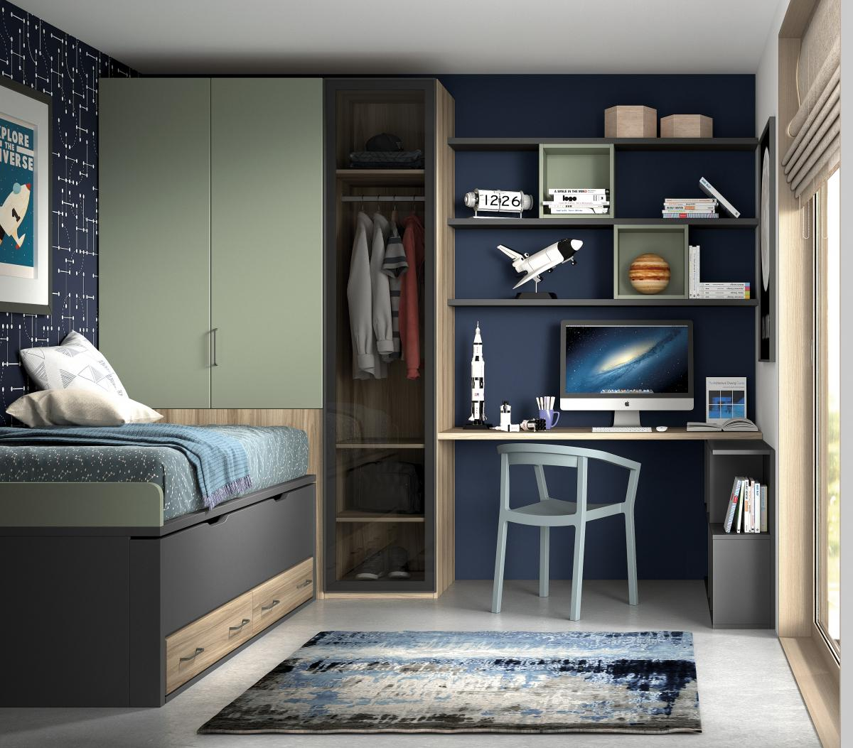 Define su estilo, potencia su espacio. En Construmuebles, creamos dormitorios juveniles que son un reflejo de su individualidad y un espacio para su crecimiento. Diseñamos entornos funcionales que se adaptan a sus múltiples necesidades: áreas de estudio inspiradoras, zonas de descanso confortables y espacios de socialización privados. Incorporamos sus gustos y tendencias, ofreciendo soluciones de almacenamiento inteligentes y personalización total para que su habitación sea un auténtico santuario donde puedan expresarse, concentrarse y relajarse. ¡Transforma su espacio en su mejor aliado para esta etapa vibrante!